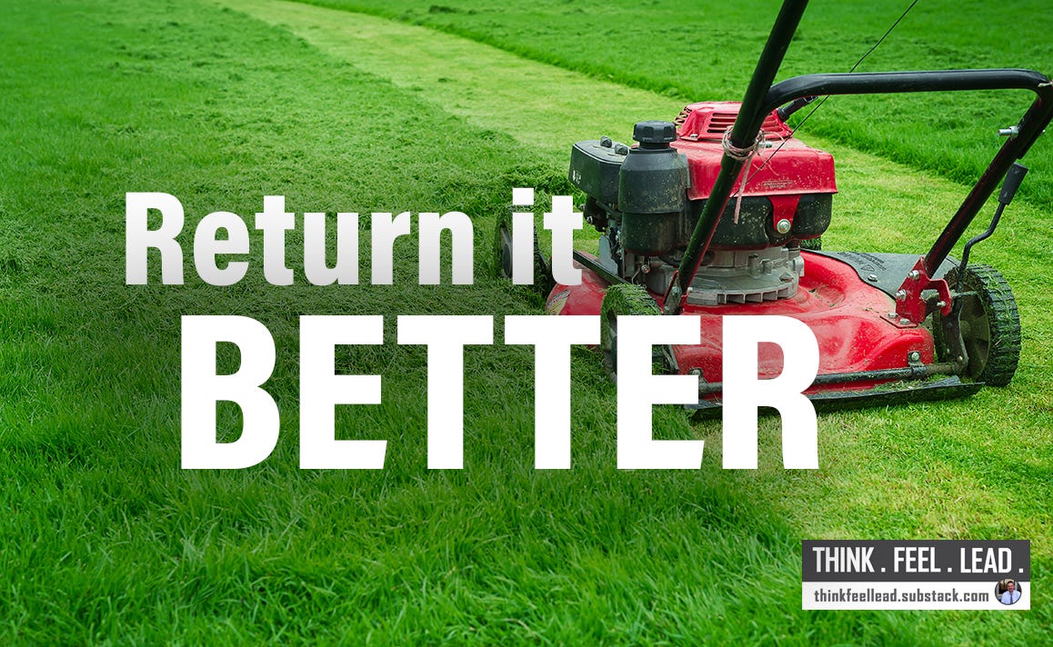I hope when the day comes for me to leave my current organization, we all honestly can say that it’s better than when I walked in the door. Our organizations are far more than a borrowed lawnmower, but my grandfather’s imperative return it better is just the same.